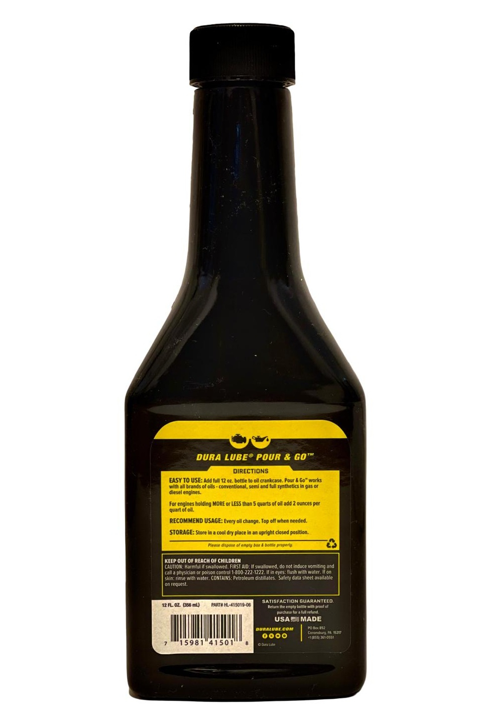 Dura Lube Pour & Go este o formulă concentrată folosită pentru a reduce căldura și frecarea pe piesele vitale ale motorului. Ajută la protejarea motorului de uzură în condiții normale si extreme de condus.